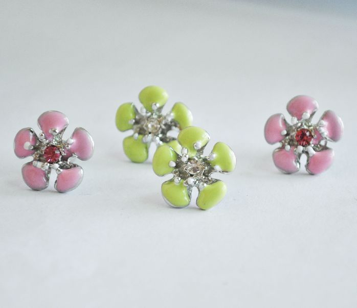 Product:Wholesale 2 Pairs Glazed Pink&Green Flower Ear Stud