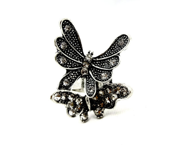 Product :New Rhinestone Metal Gold/Silver Double Butterfly Ring Adjustable Size