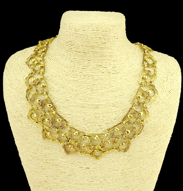 Product:Fashion retro golden silver plated paralleling carving hollowing flower choker chunky chain necklace