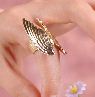 Product: R-1027 New Charming Gold Plated Double Angel Wings Finger Ring Size #5 Free Sipping