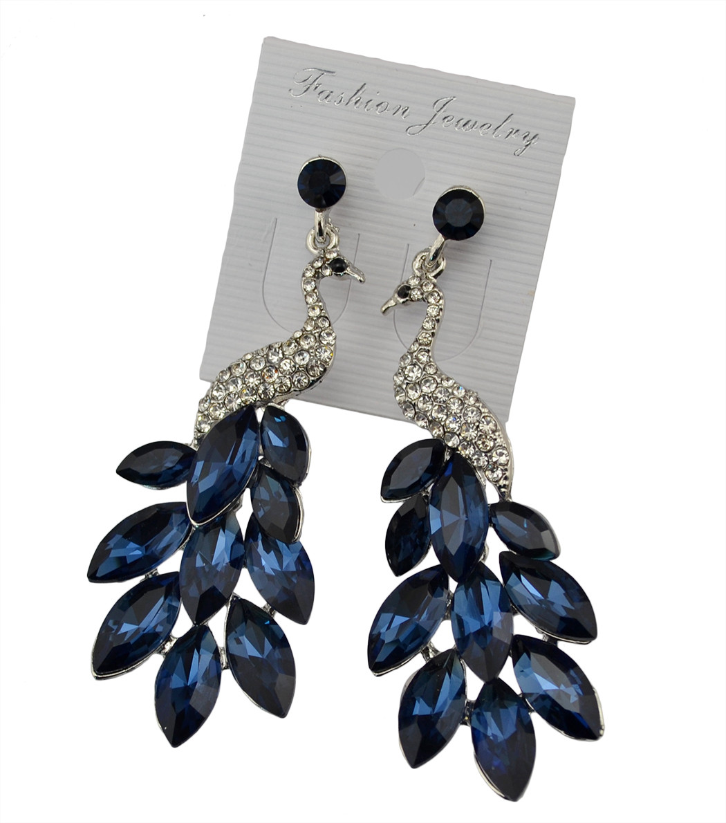 Product: Fashion retro silver plated rhinestone earrings crystal peacock theme women jewelry
