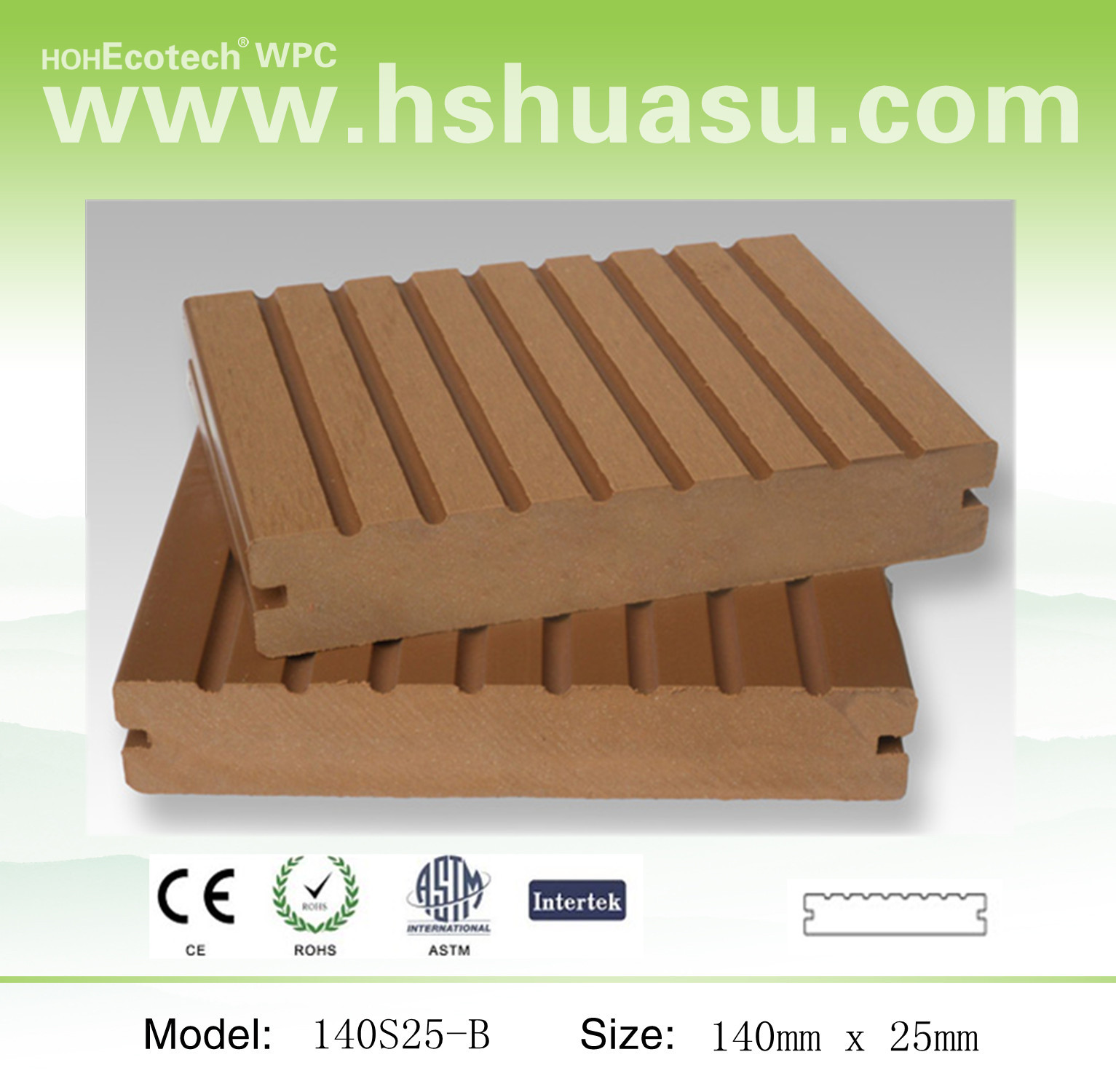 The Eco-friendly WOOD PLASTIC COMPOSITE outdoor decking / flooring we produced is made of