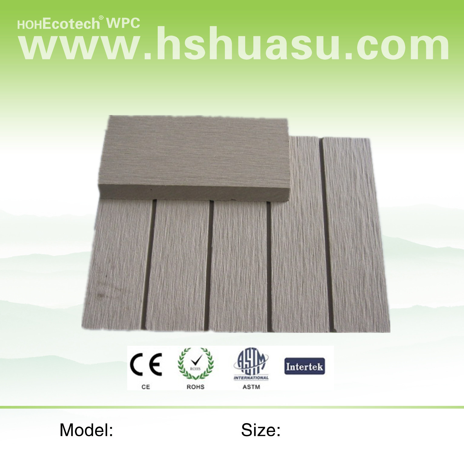 The Eco-friendly WOOD PLASTIC COMPOSITE outdoor decking / flooring we produced is made of