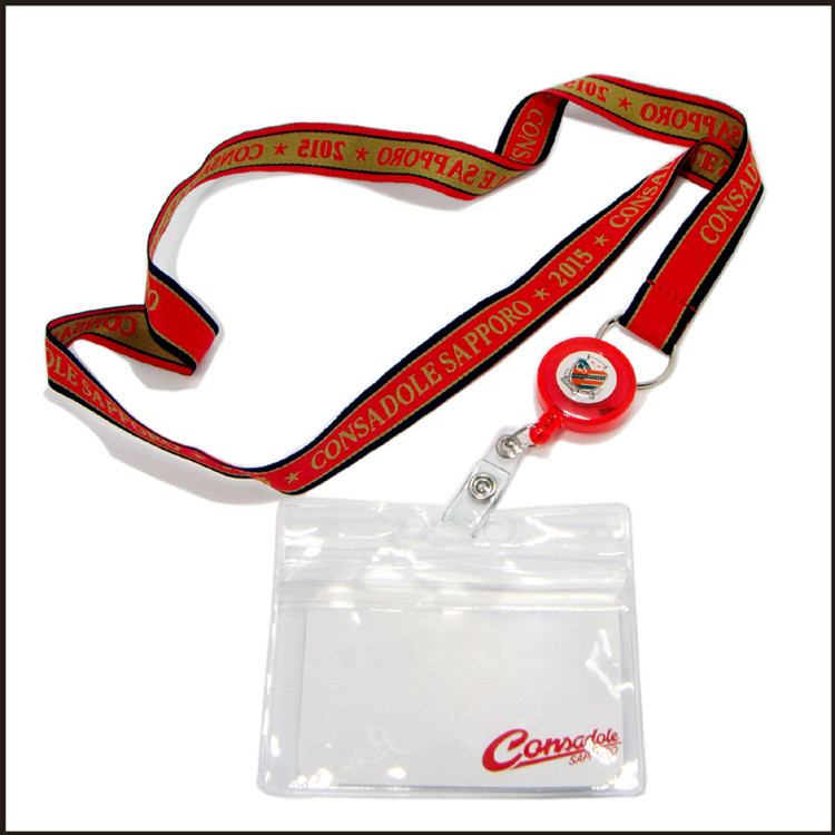 Custom retractable reeler with card bag red and black woven logo neck lanyards
