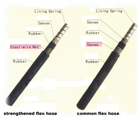 Strengthened flex hose for concrete vibrator