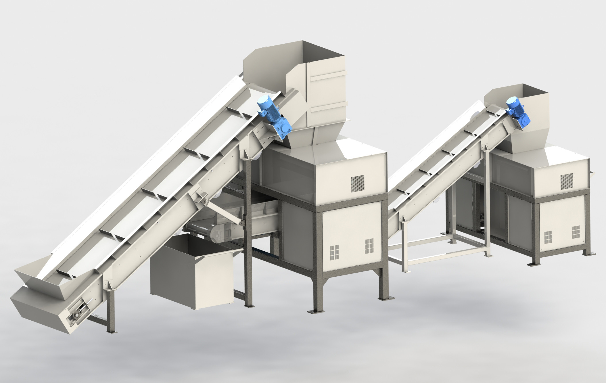 Two units of two shaft shredders |