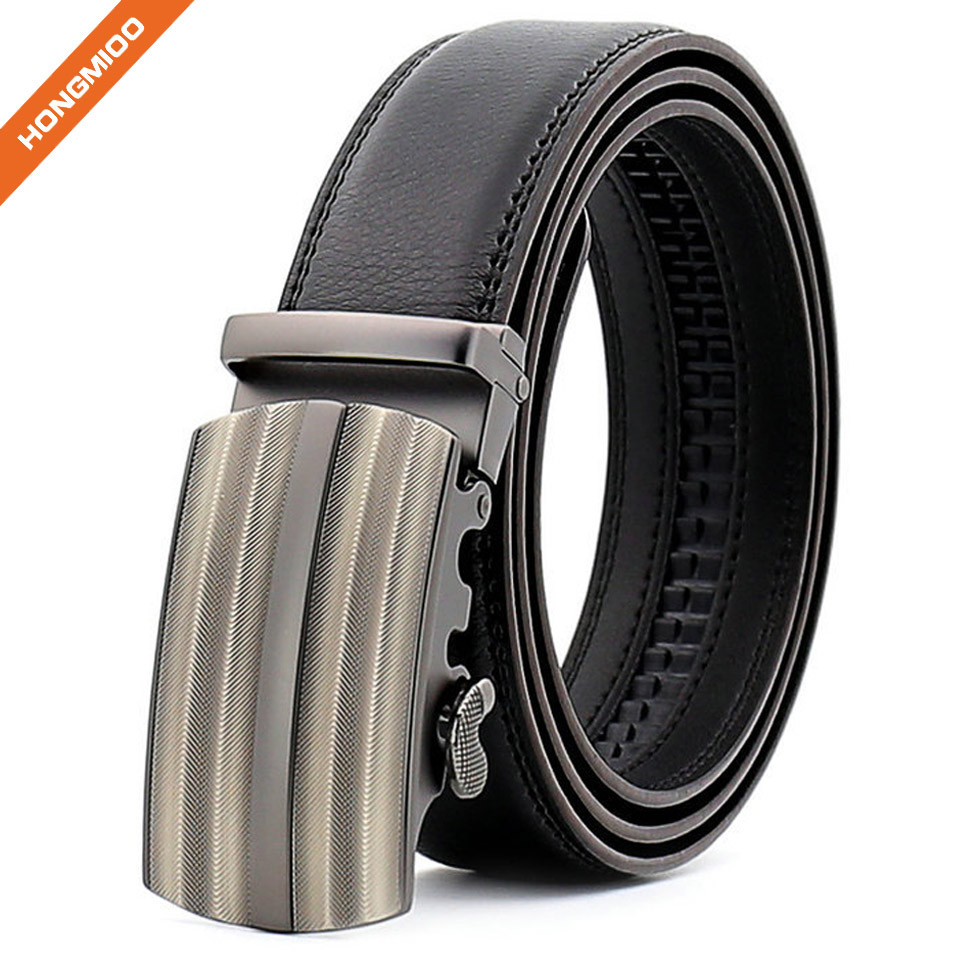 Hongmioo TB1489 Metal Side Release Automatic Buckle Cow Split Leather Mens Ratchet Belt