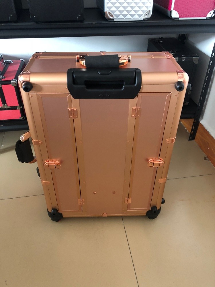 A high grade product portable push-pull aluminum alloy make-up box luggage with lamp with sound to makeup artist