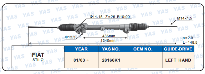 28166K1 Hydraulic Steering Rack /Steering Gear FIAT STlLO
