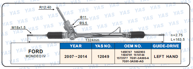 12049 Hydraulic Steering Rack /Steering Gear FORD MONDEO lV 1459747/1462955/1504781/1514144/1572577/7G91-3A500-A/7G91-3A500-AG