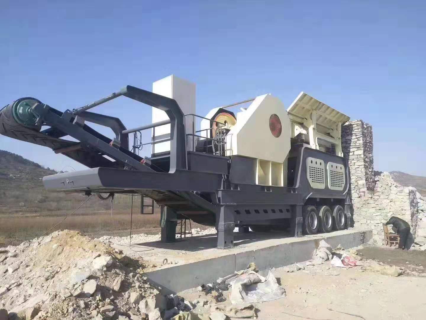 Vibrating screen | Cone crusher | Belt conveyors | Wheel configuration |