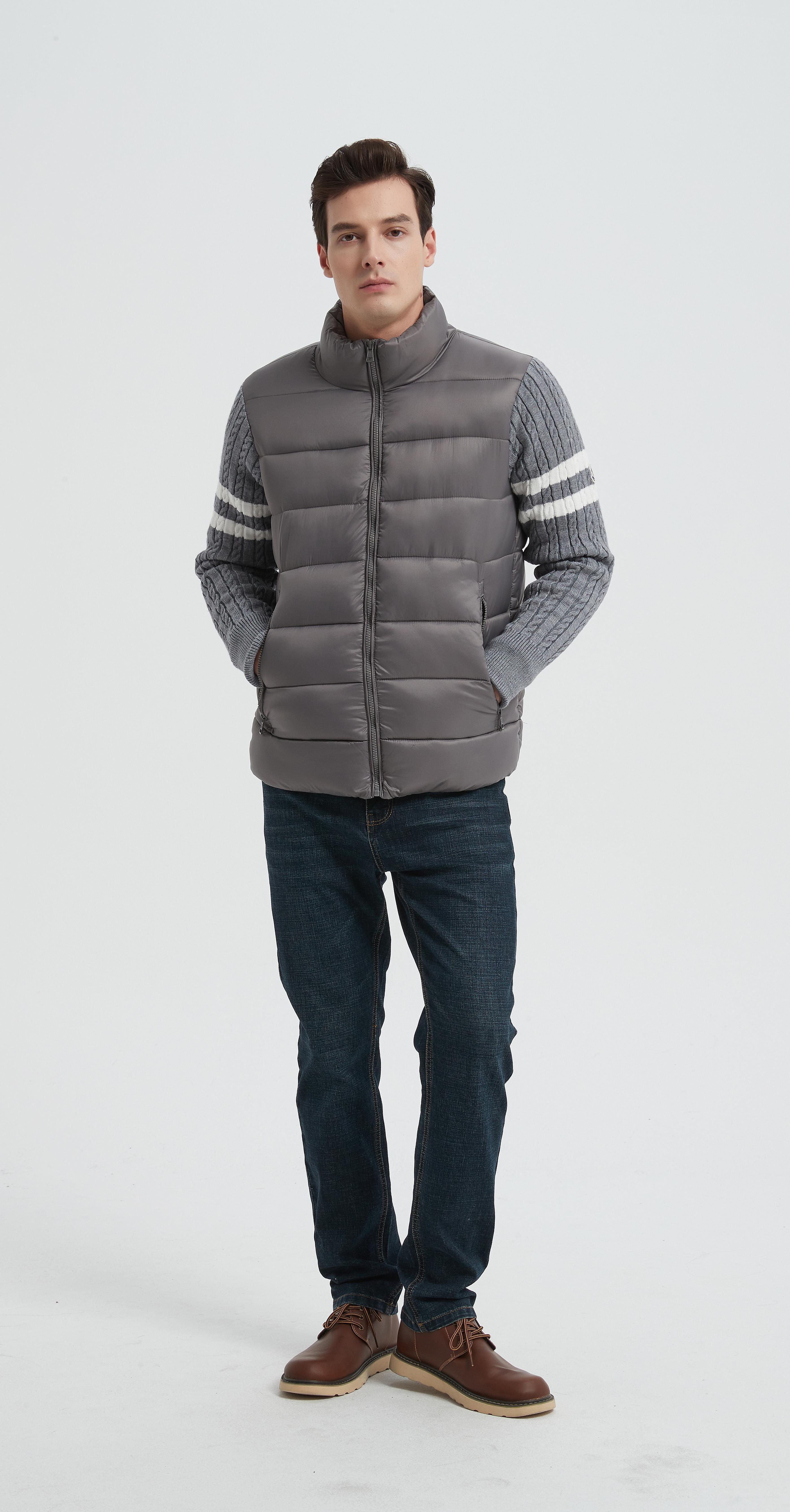 Wholesale high quality men's knitted panel stand-collar down jacket from Chinese |