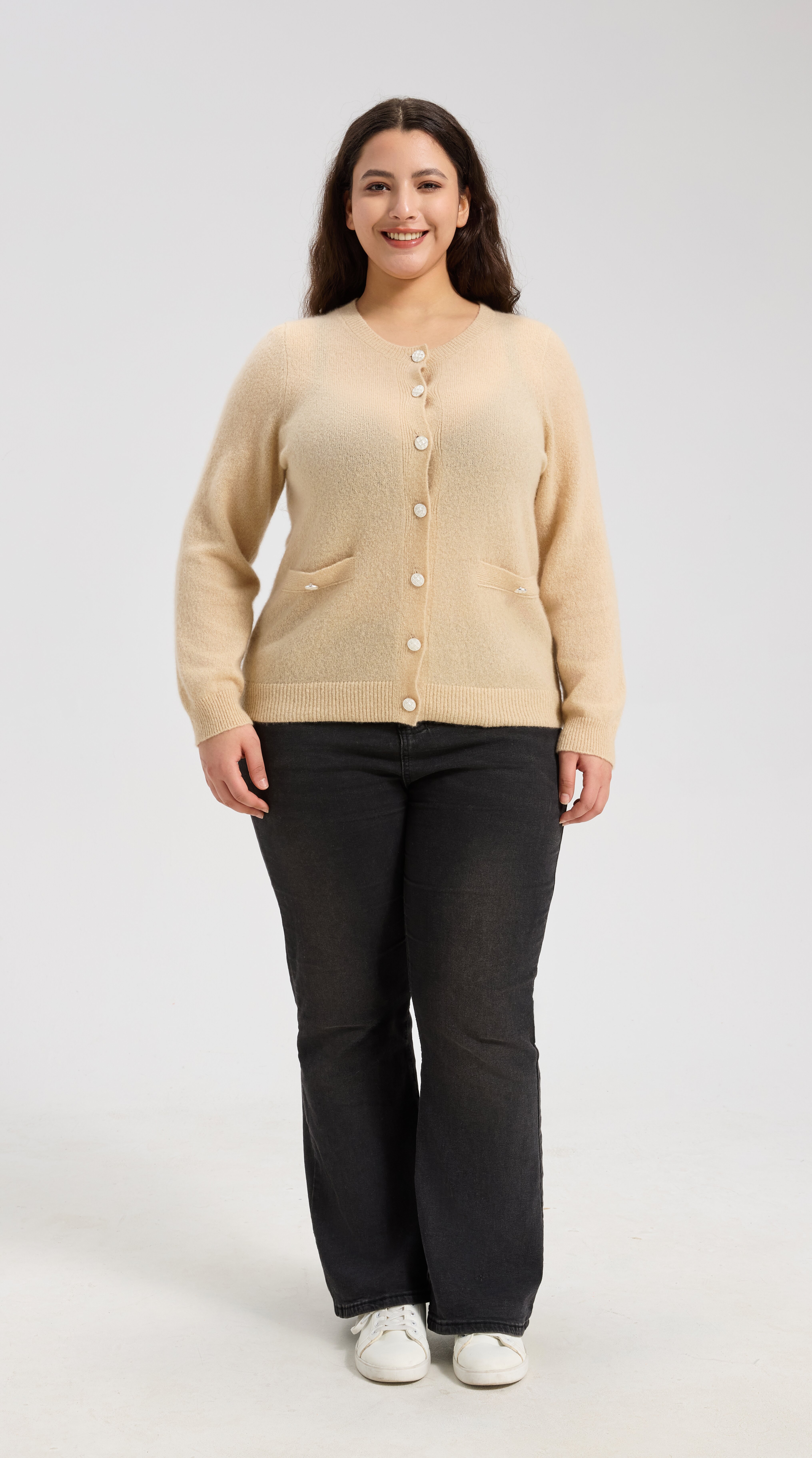 New Design Women's Mock Pocket Crew Neck Cardigan From Chinese Manufacturer |