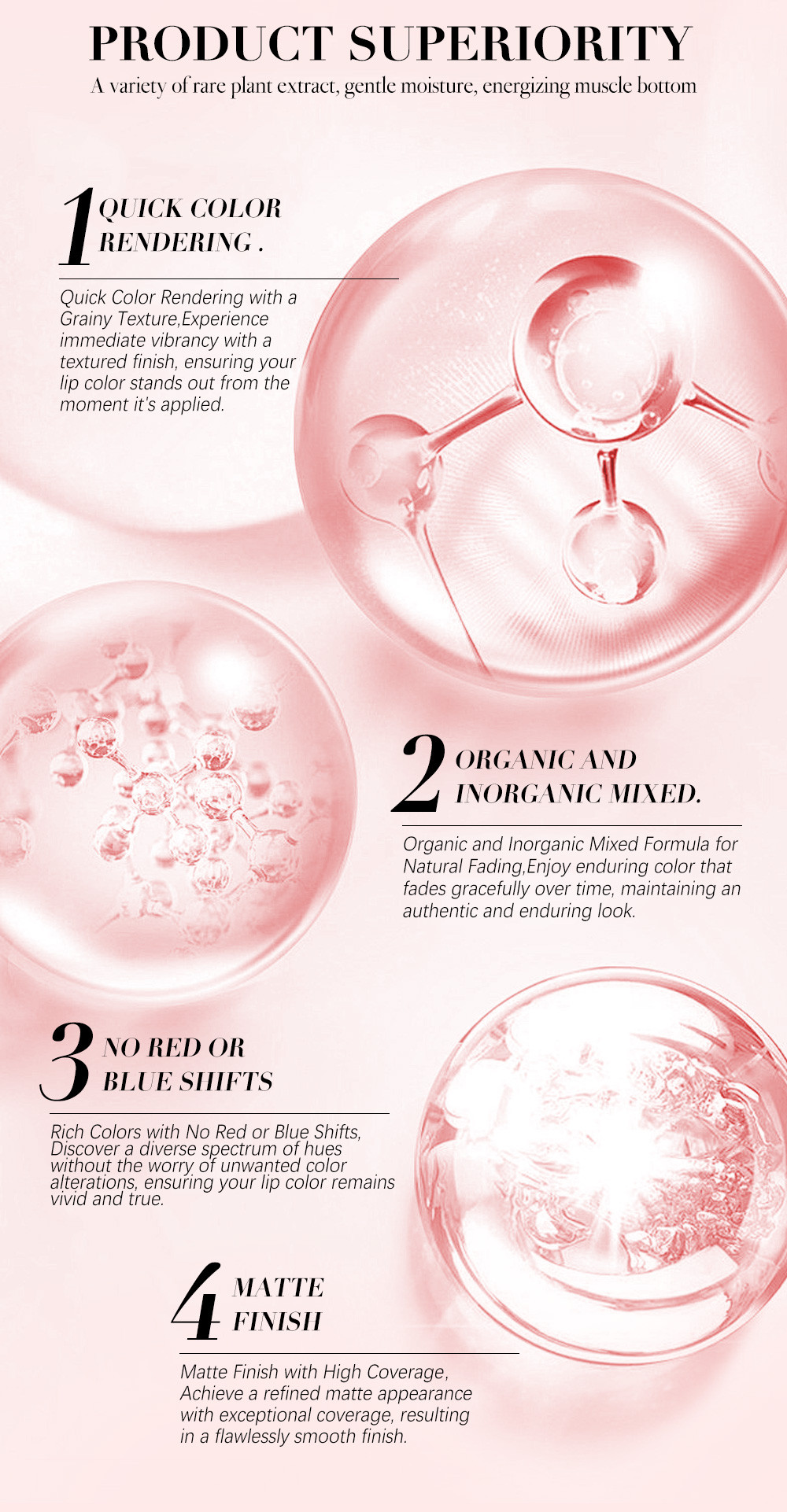 Color range 14 eyebrow colors, 25 lip colors, 4 scalp/ eyeline