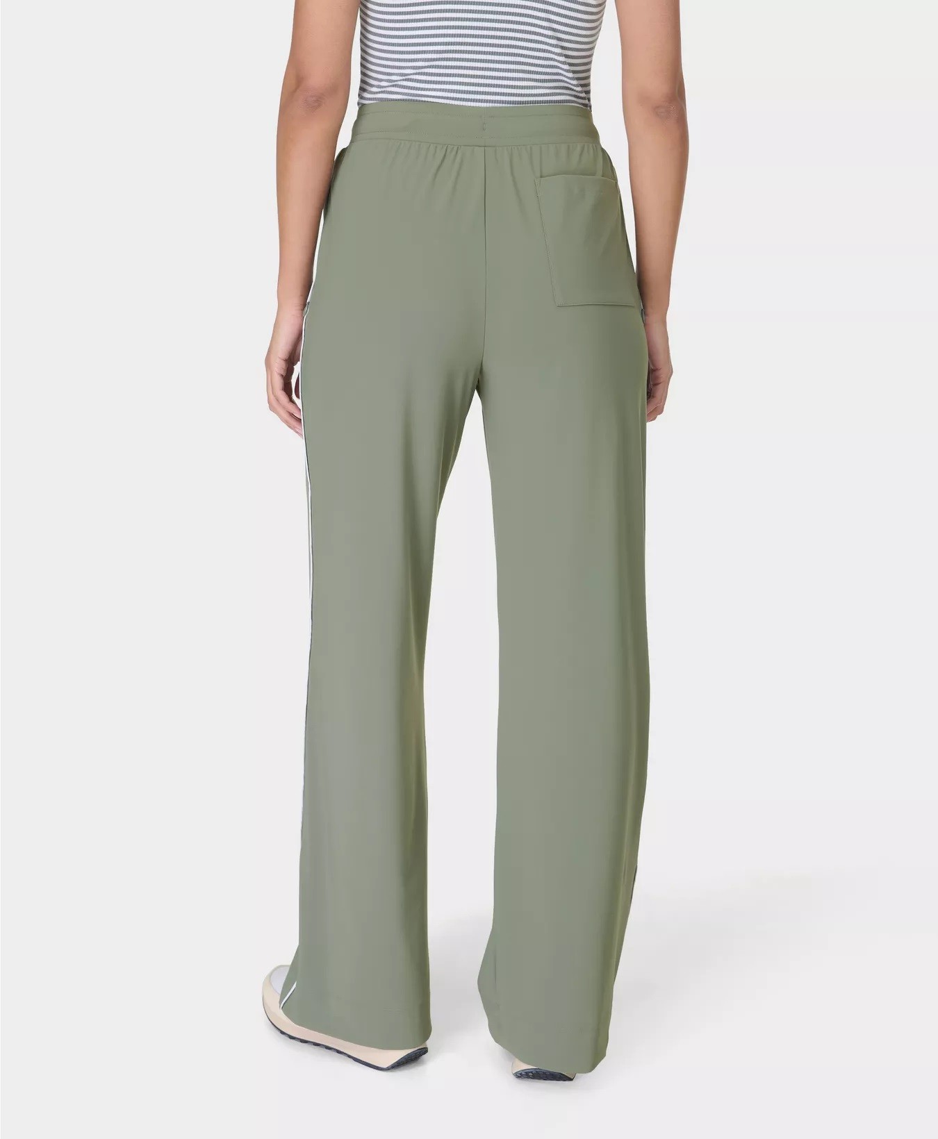 Wide leg silhouette with updated elasticated waistband and piping detail on the sides.