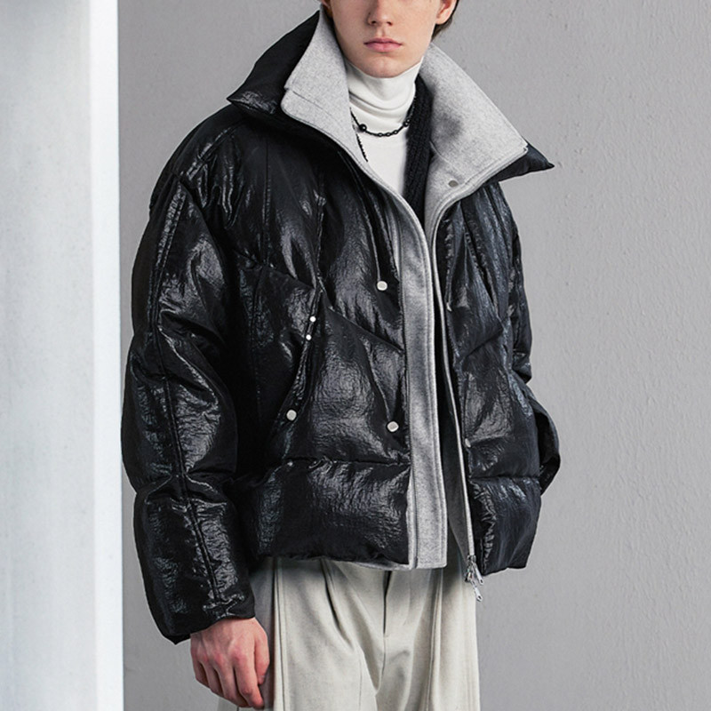 Oversized fake two-piece padded jacket, woven fabric (100% nylon), polyester-filled—cozy, street-style essential.