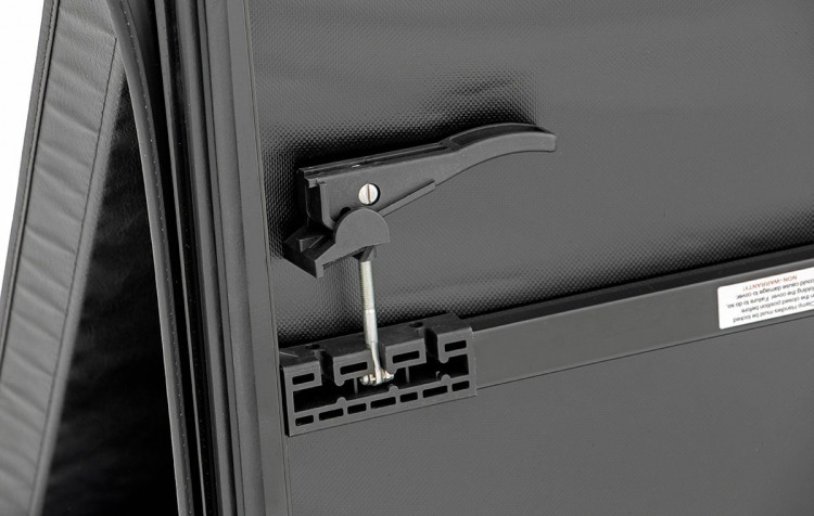 • Heavy-duty locking straps for when cover is folded forward to secure on bed open