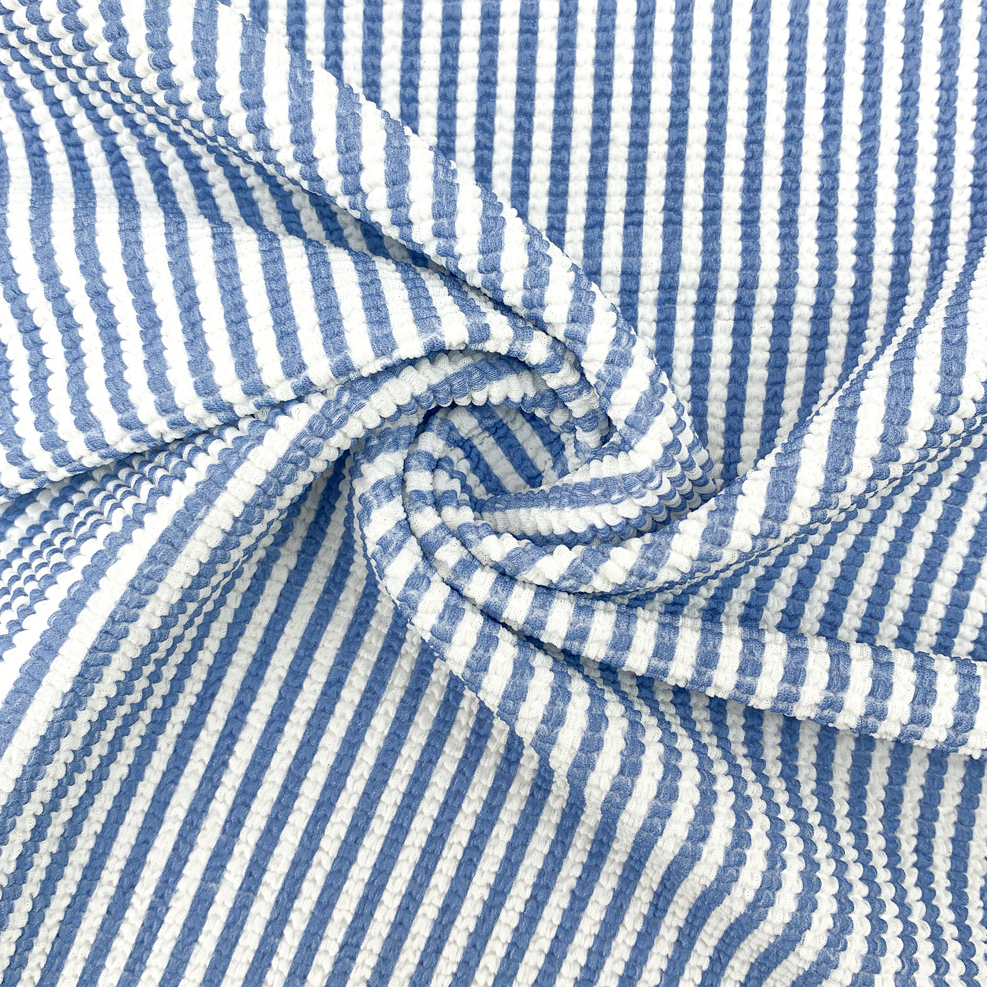 Seersucker Pleated Crinkle – Distinctive puckered texture conceals contours and reduces wet cling for enhanced comfort.