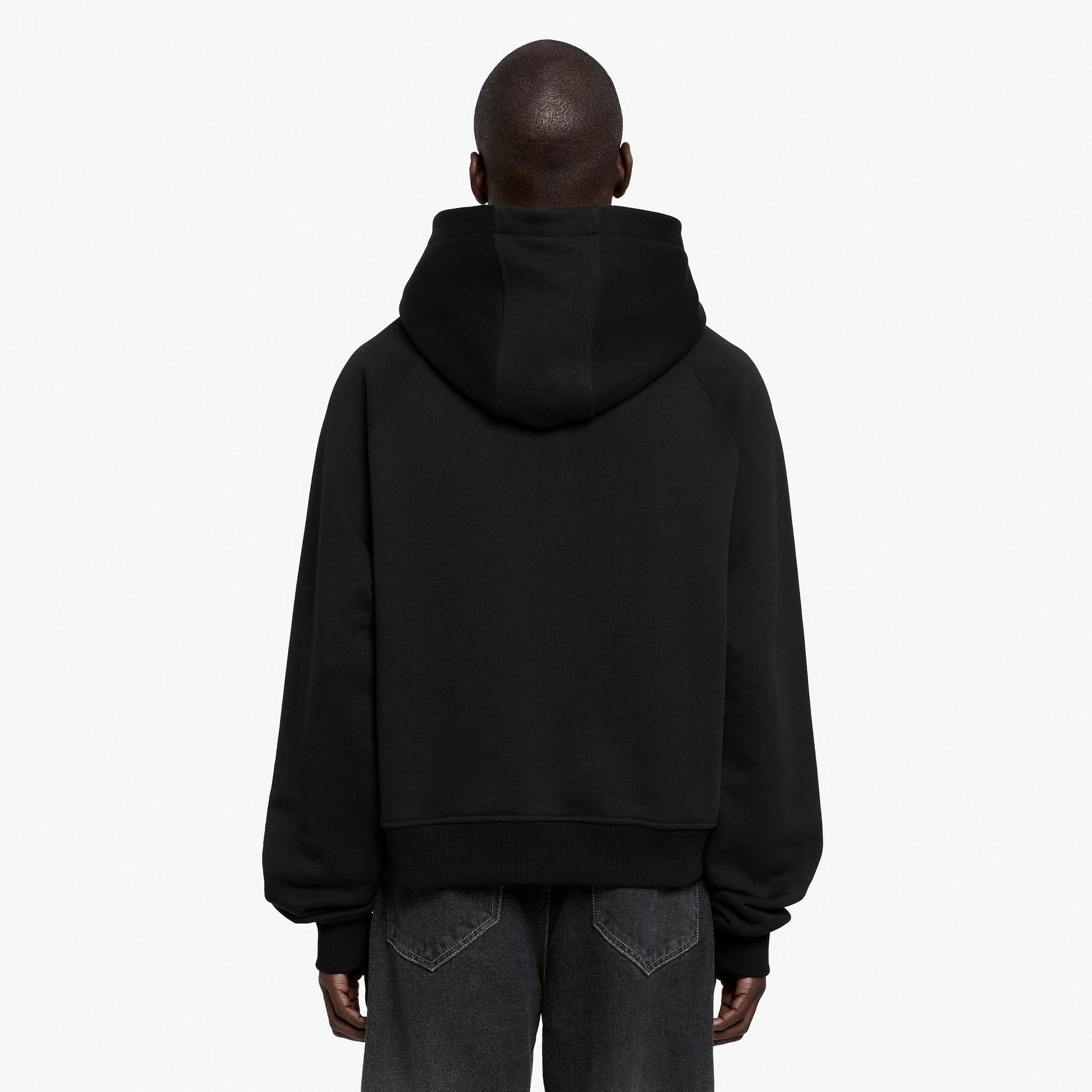 Embroidered logo black casual hoodie, classic pure black, slimming and versatile, exquisite embroidered logo adds texture, loose and comfortable, it is a versatile basic style for casual wear.